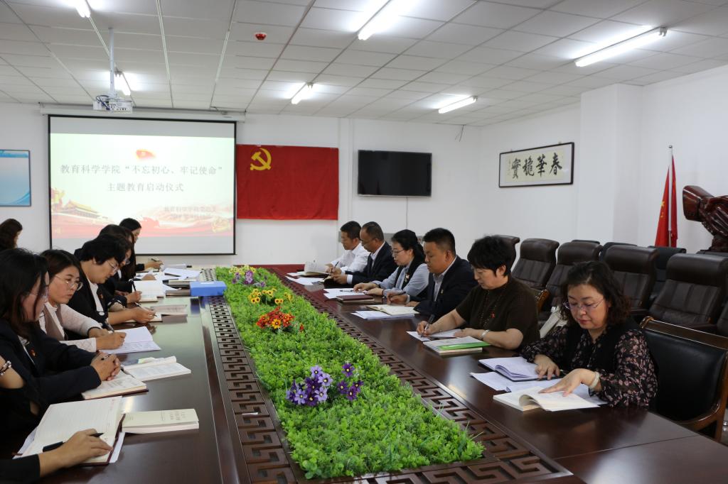 为扎实做好“不忘初心、牢记使命”主题教育工作,9月19日下午,PP电子游戏平台网站教育科学学院党总支于230会议室召开“不忘初心、牢记使命”主题教育启动仪式。学校党委委员、科技处处长李平出席会议,教育科学学院领导班子、教工党员、在校学生党员、学生预备党员参加会议。院长孙霞主持会议。