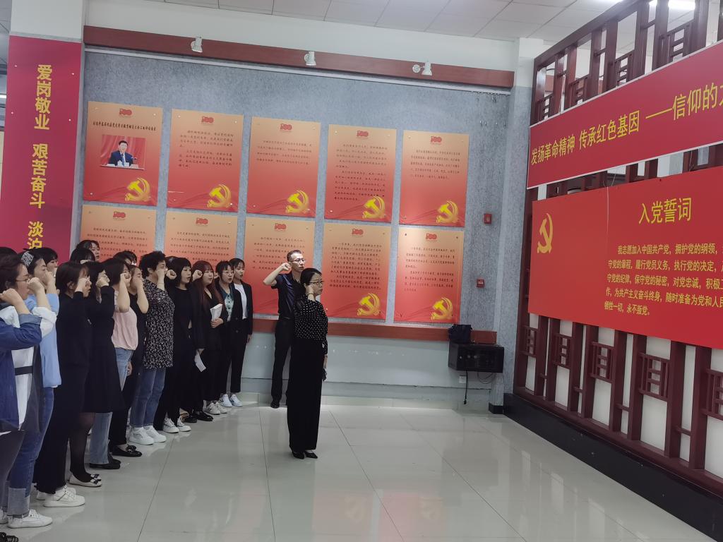 走进美术与设计学院党史知识展览馆,“发扬革命精神传承红色基因——信仰的力量”背景墙立刻映入眼帘,教育科学院党总支书记张妙珠带领全体师生党员面向党旗,重温入党誓词,一句句铿锵有力的誓言拉开了本次主题党日活动的序幕。