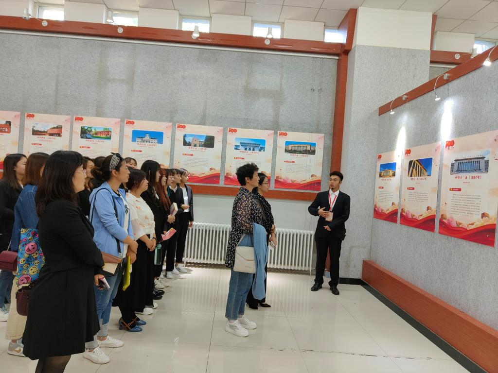 一幅幅图文并茂的展板伴着师生讲解员们全面的讲解,中国共产党成立100周年的辉煌历程和在革命和建设中凝聚形成的伟大精神、一个个感人至深、催人奋进的革命故事,深深打动了参观展览的师生。