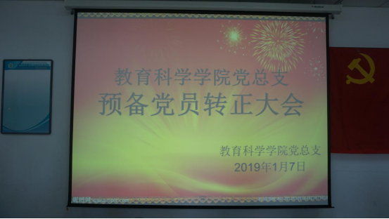 2019年1月7日上午,教育科学学院党总支在主教楼31230会议室召开预备党员转正大会,教育科学学院党总支书记张妙珠、副书记李海,党总支宣传委员、教工党支部书记孟庆艳以及部分教工党员、学生党员和学生党支部成员出席本次会议。大会由教育科学学院党总支副书记李海主持。