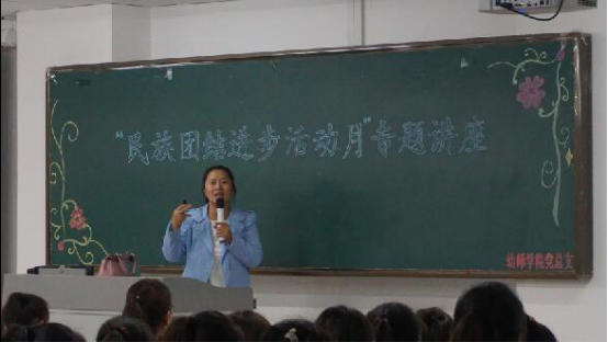 活动一: 幼师学院党总支于2017年9月19日晚特邀马列部张爱梅老师在322教室作了题为“守望相助,打造祖国北疆亮丽的风景线”的专题讲座。学生党支部、团总支、学生会全体成员,党员、预备党员和入党积极分子,各班班干部及部分学生代表共280人参加了此次讲座。