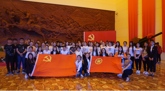 中午11时,同学们结束了对战役馆的参观。在纪念馆大厅的党旗下,李学敏带领党员、预备党员重温了入党誓词,激励大家牢记誓言,不忘初心,坚定信仰,一心向党。之后全体活动人员在党旗与团旗下合影留念。