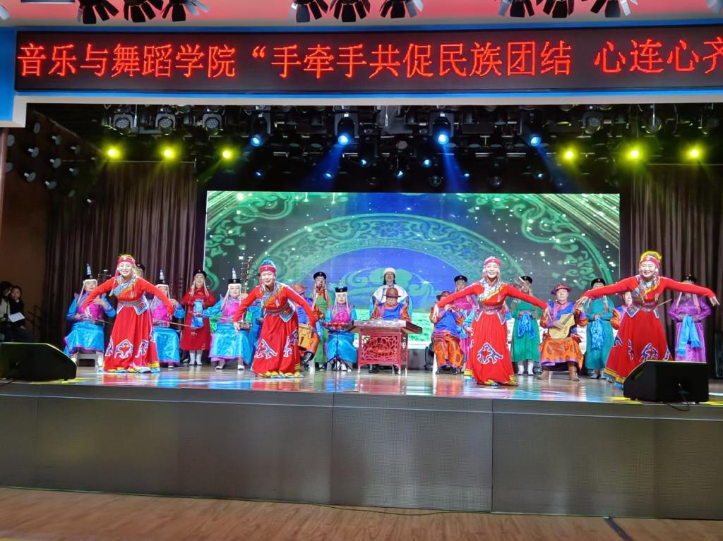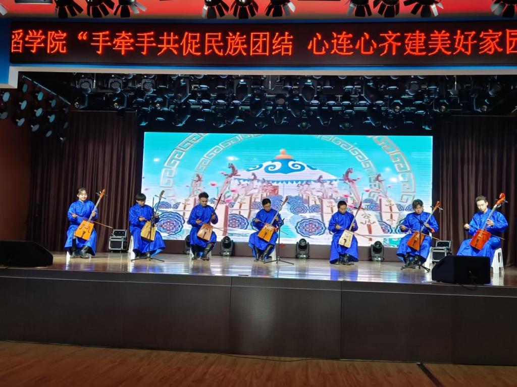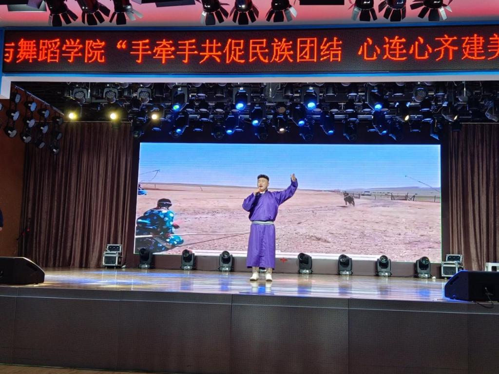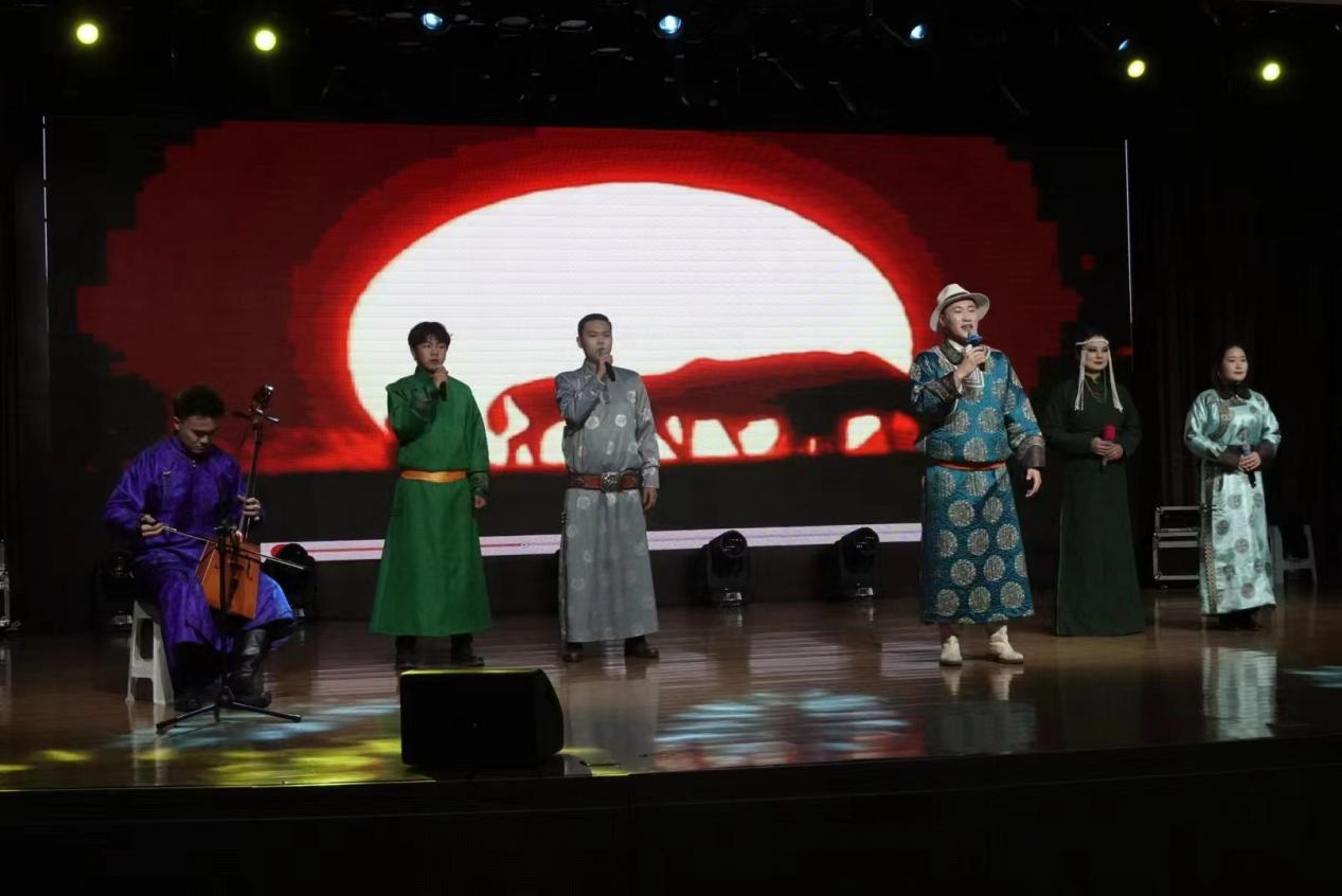伴随着“宴曲之首”《阿斯尔》悠扬浑厚的乐曲,文艺演出拉开帷幕。精彩的潮尔与马头琴音色浑厚柔和,《领航新时代》歌曲深情感人,弹拨乐合奏音色优美,《守望相助》激情澎湃,《遥远的梦境》婉转响亮,《读中国》诵读掌声热烈,张瑾同学的一首《我爱你中国》感染了全场每个人。