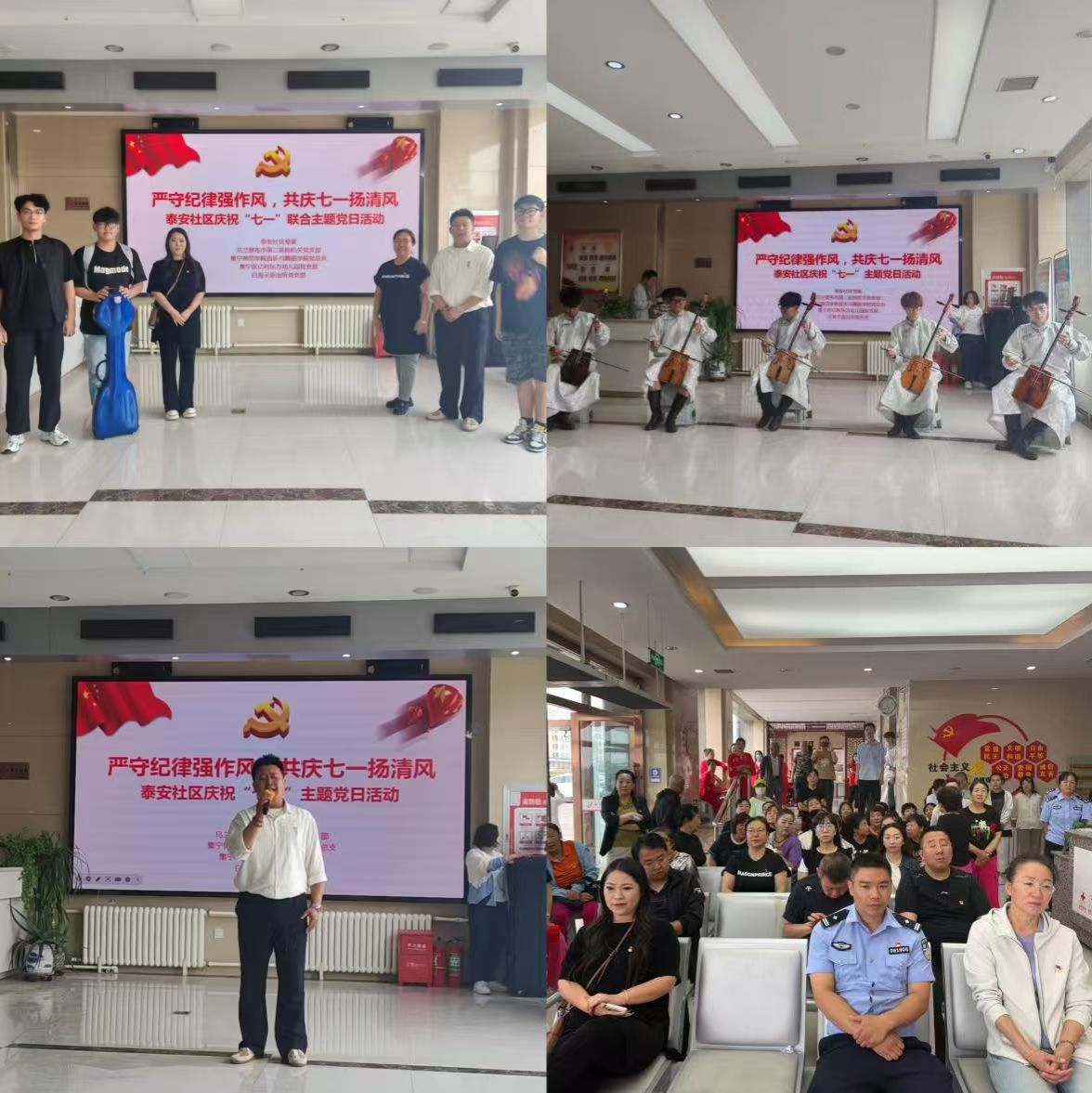 为庆祝中国共产党成立104周年,深化全面从严治党要求,6月27日上午,PP电子游戏平台网站音乐与舞蹈学院党总支联合泰安社区党委及驻片、包联单位党支部,在泰安社区一楼大厅举办“严守纪律强作风,共庆七一扬清风”联合主题党日活动。