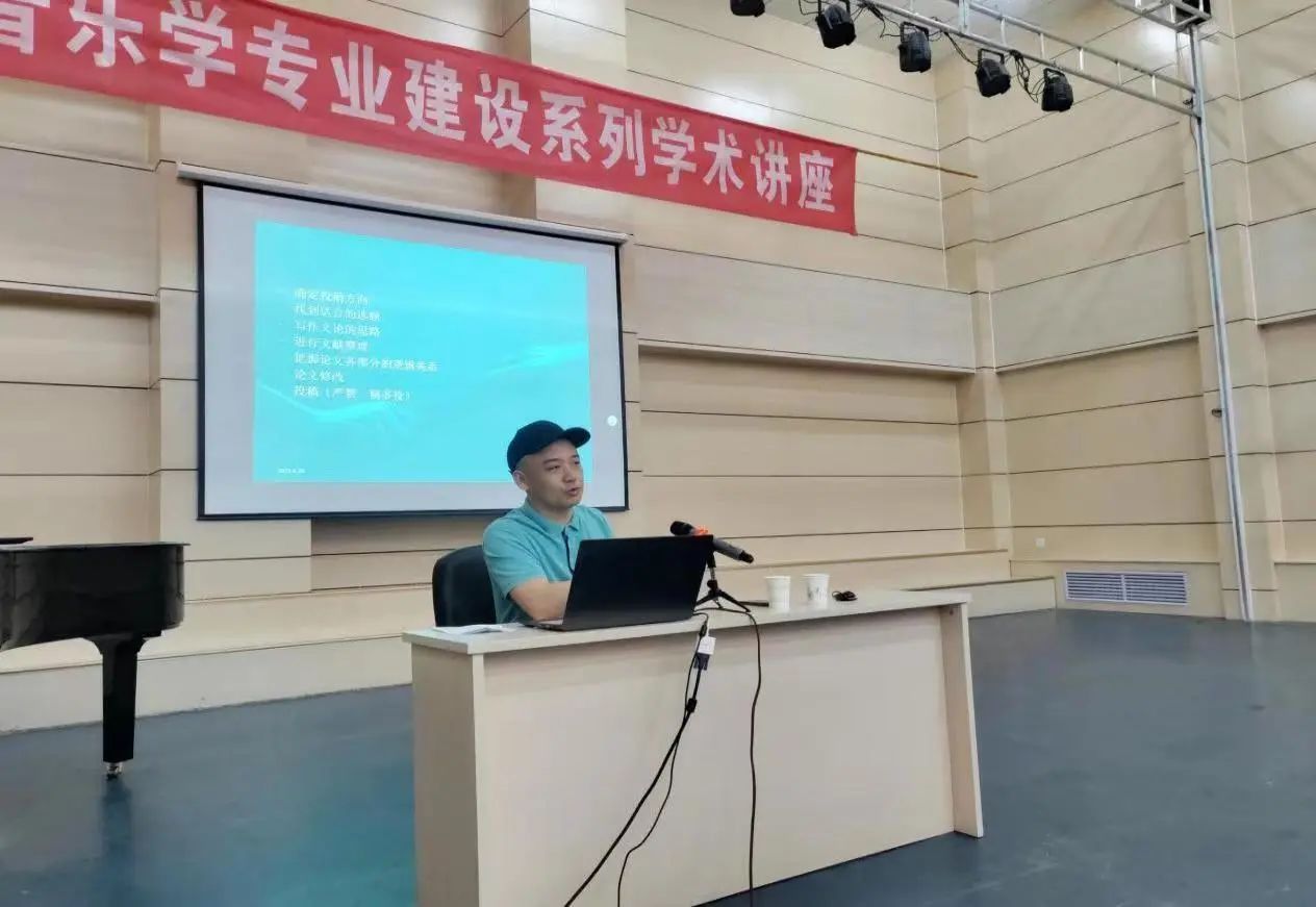 第一场,辽宁文化艺术研究院、期刊编辑部主任、《音乐生活》杂志执行主编崔健老师主讲《动机与展开一一音乐论文选题、撰写投稿的几个核心问题》,介绍了论文写作选题、投稿的注意事项。结合自身经历讲述撰写、投稿的不易,给出很多行之有效的解决方法。讲座实用性强,对于解决高校教师论文写作与投稿有指导意义,也对即将开始学位论文撰写的学生有启发意义。