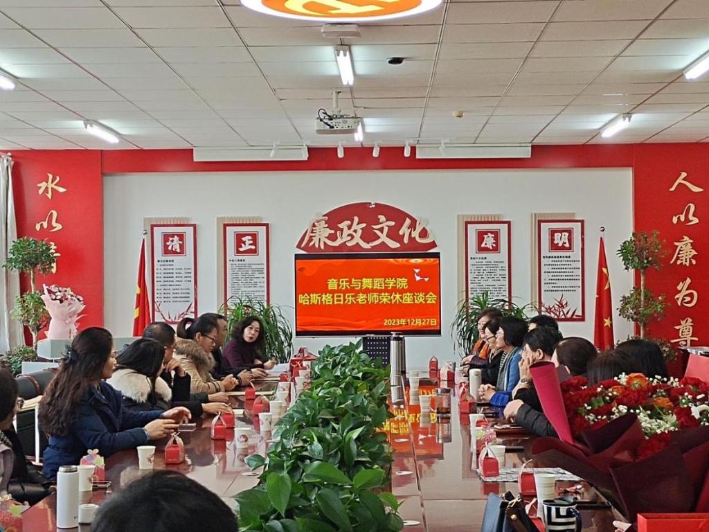 12月28日,PP电子游戏官网音乐与舞蹈学院为退休教师哈斯格日乐举行荣休座谈会。离退休人员工作处处长常晓华,综合服务科科长巩立红、人事科科长刘晓鹤、音乐与舞蹈学院全体教职工和学生代表参会。座谈会由音乐与舞蹈学院党总支书记武俊芳主持。
