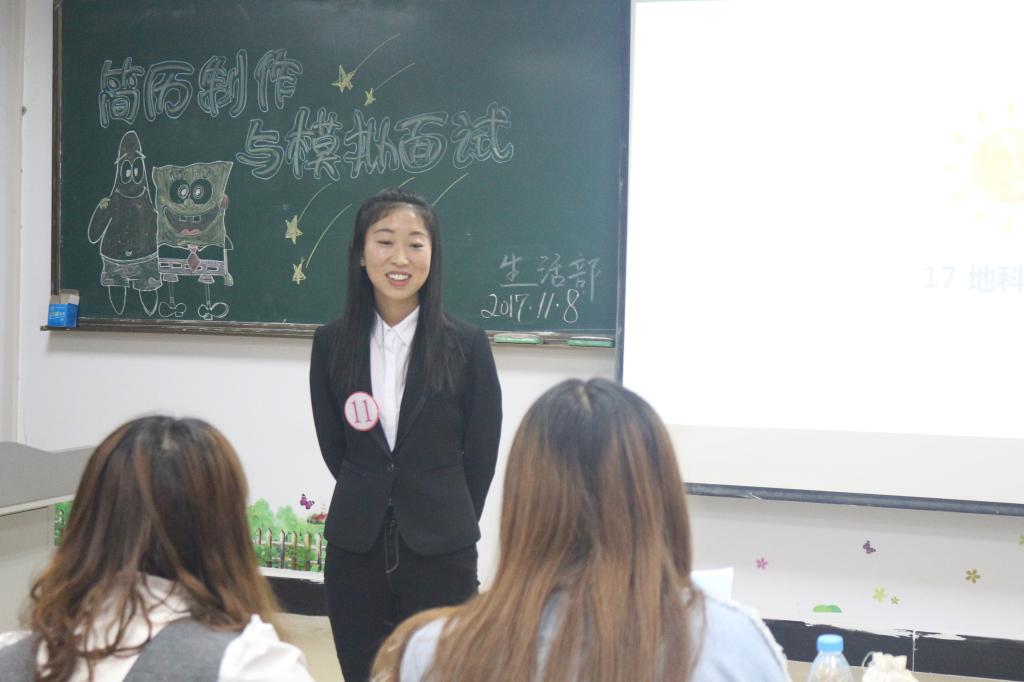 2017年11月8日,我系简历制作与模拟面试比赛于主教楼420举行。学生会部分部部长担任本次比赛的评审人员。参加本次活动的选手通过提前上交的个人简历和现场问答的面试形式进行参赛。每名参赛选手都对自己进行了简单详细的自我介绍,模拟面试以个人面试的职业岗位展开,每位参赛选手都充分展现出自己对待面试岗位的自信和热情,并在评审人员的提问中充分展示个人的工作态度,工作方法以及处理问题的能力,在每位选手身上,我们都看到了来自新一代青年学生不同的风采。