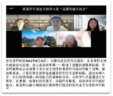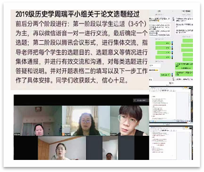 因疫情影响,2023届本科生毕业论文选题答疑交流会采用线上形式进行。各小组按照学院的统一部署与要求,紧紧围绕师范认证在论文环节中的要求,结合专业现状,强化学生中心、产出导向、持续改进的认证理念,认真开展答疑交流会。