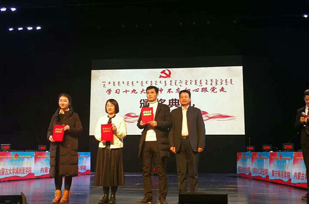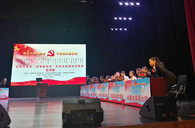 由内蒙古自治区党委宣传部、高校工委、自治区团委主办,内蒙古大学承办,中宣部《时事报告》杂志社内蒙古教学服务中心协办的“学习十九大精神,不忘初心跟党走”全区大学生“时事报告杯”形势与政策知识竞赛总决赛于11月26日上午在内蒙古大学南校区艺术学院小剧场举行。经各院校层层选拔、初赛、复赛后,来自PP电子游戏平台网站、内蒙古大学、内蒙古师范大学、内蒙古农业大学、内蒙古科技大学、内蒙古民族大学、包头医学院等12支队伍参加了总决赛。