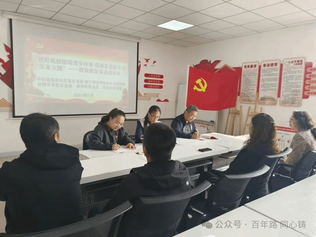 为深入学习贯彻党的二十届三中全会精神及中央、自治区、市民族工作会议精神,以铸牢中华民族共同体意识为主线,扎实开展民族团结进步月宣传系列活动,9月27日,历史文化学院教师及学生党支部联合学生处党支部、质评处党支部共赴佳美社区开展“中华民族一家亲 同心共筑中国梦”主题党日活动。
