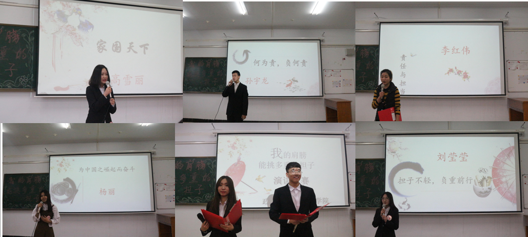 根据内蒙古自治区《关于组织开展“我的肩膀—能挑多重的担子?”主题讨论及实践活动暨全区首届大学生文化艺术活动月》的文件精神以及PP电子游戏官网相关通知要求,政史学院在2018年12月27日下午于泉山校区主教楼419教室举办“我的肩膀,能挑多重的担子?”主题演讲比赛。