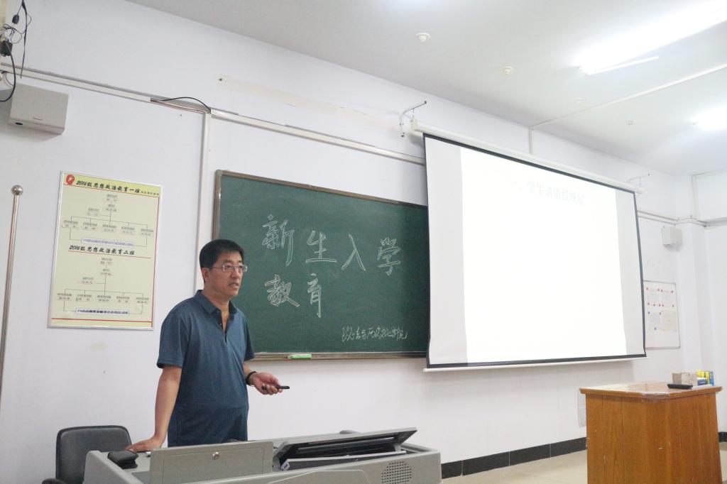 9月6日晚田博老师为新同学们讲解了党团与学生自组织建设,并从学习方面、生活方面、职业生涯规划方面为新生提出具体的建议。