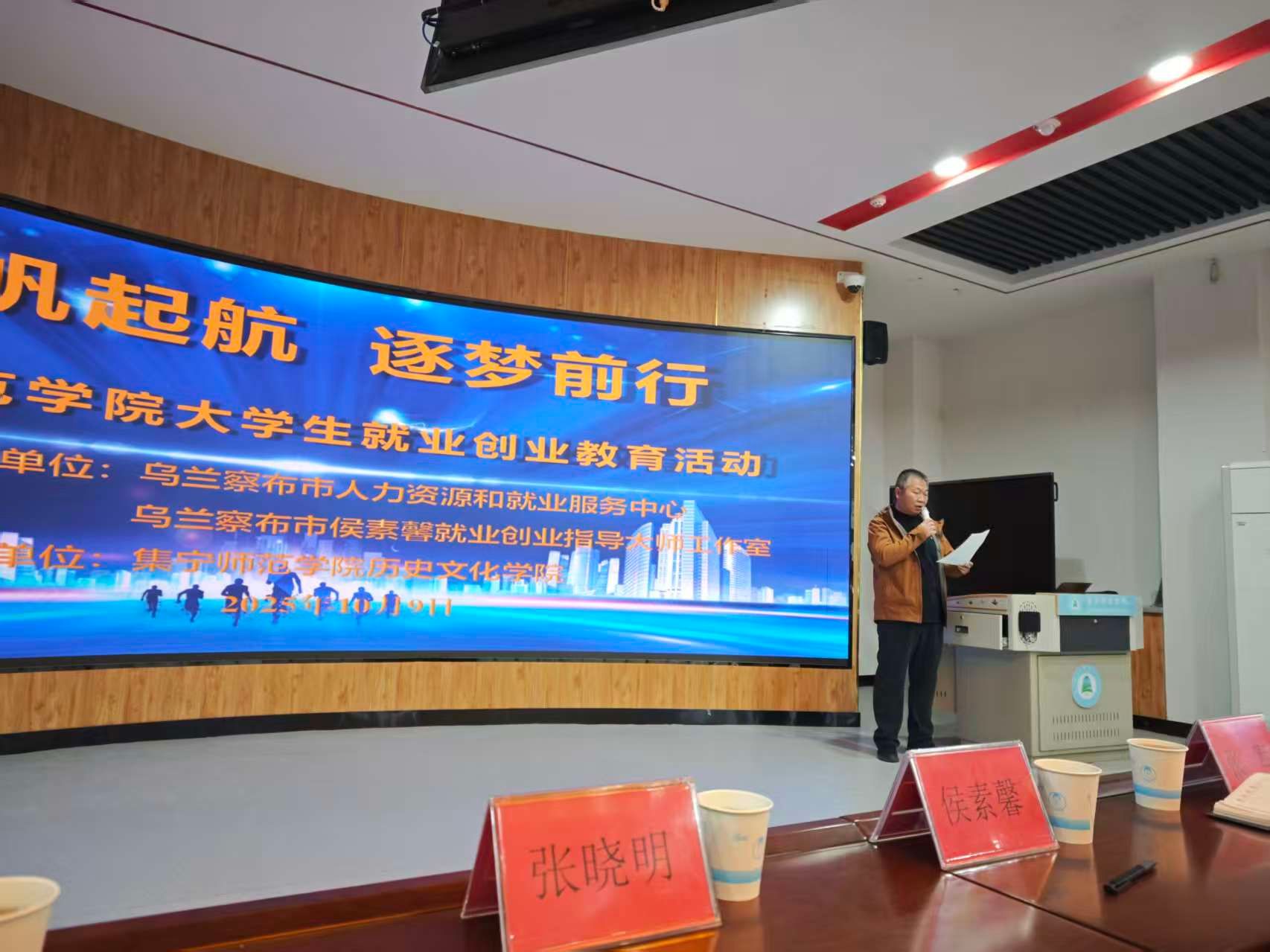 乌兰察布市人力资源和就业服务中心创业指导科科长张晓明、科员秦怡,乌兰察布市侯素馨就业创业指导大师工作室负责人、继续教育学院院长侯素馨,历史文化学院党总支书记赛汉其其格、党总支副书记、院长张军,以历史文化学院、继续教育学院、大学生业园相关参加了活动。